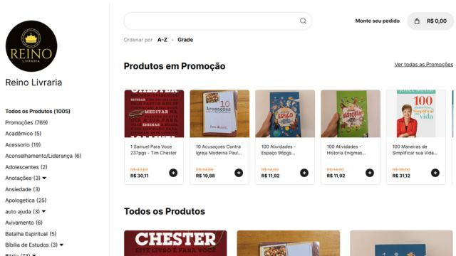 O catálogo online do Nex resolve esses problemas: você pode criar categorias, destacar promoções, montar kits de produtos e permitir que os clientes consultem os livros e outros produtos disponíveis de forma rápida. Isso reduz dúvidas, aumenta a confiança e melhora a experiência de compra da sua clientela.