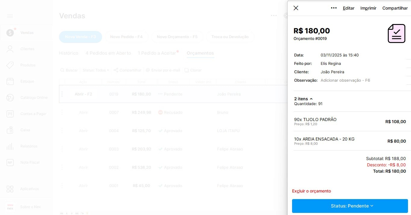 Comece hoje a criar orçamentos para seus clientes! Baixe o Nex e aproveite esse e mais recursos para sua gestão de loja.