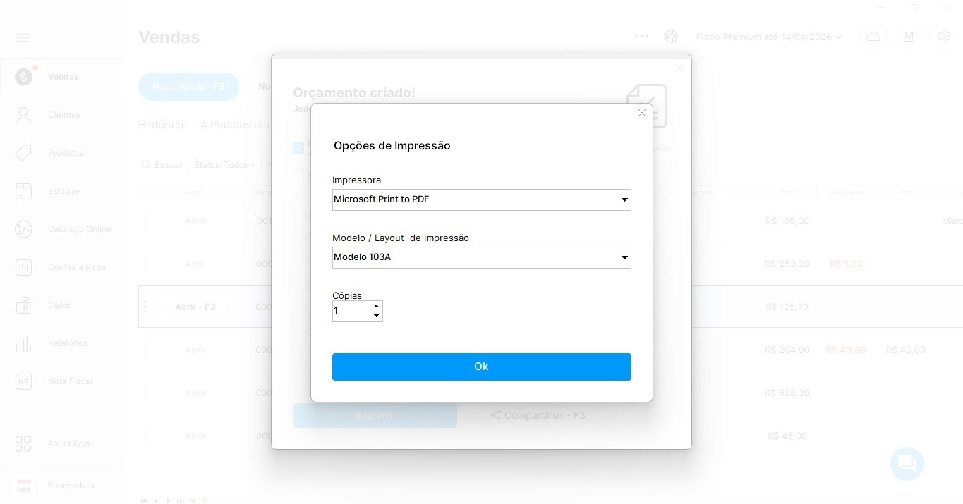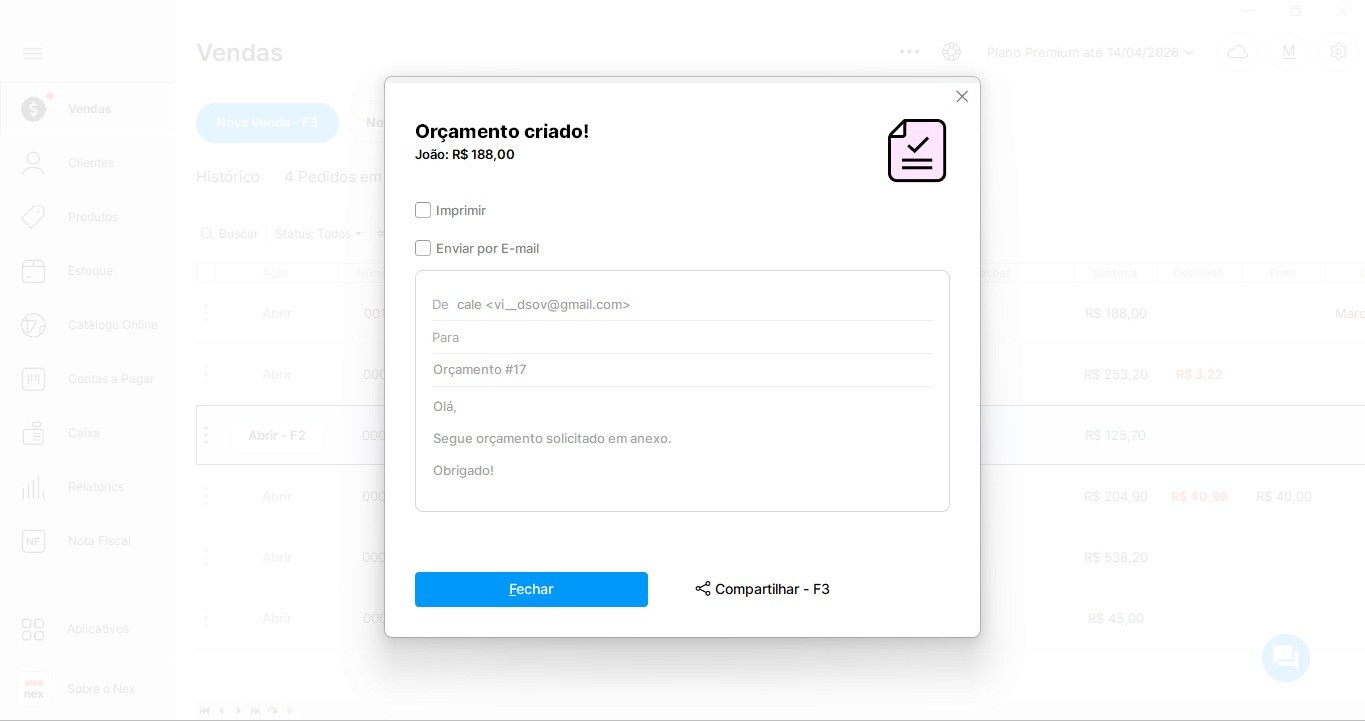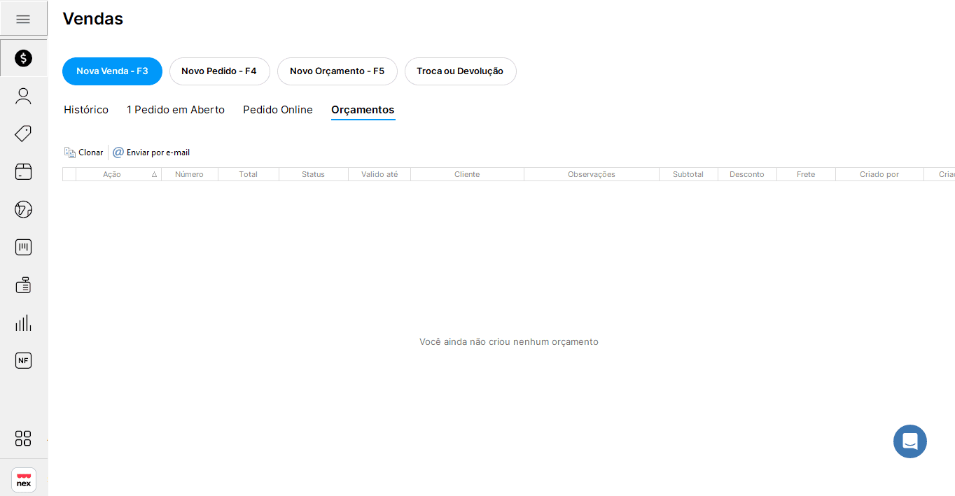 Como criar um orçamento pelo Nex do desktop