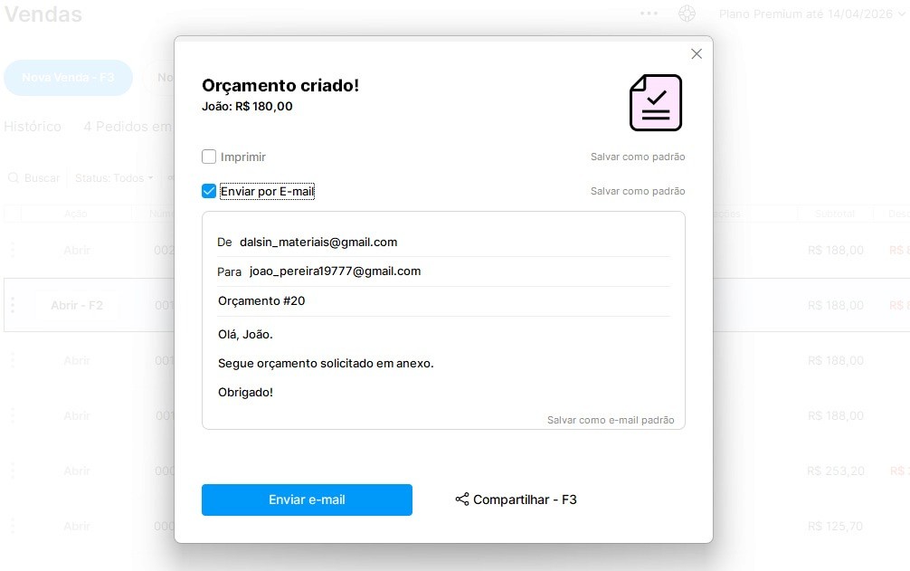 Assim você garante que o orçamento não será extraviado. Veja a seguir como enviar um orçamento por e-mail ou WhatsApp: