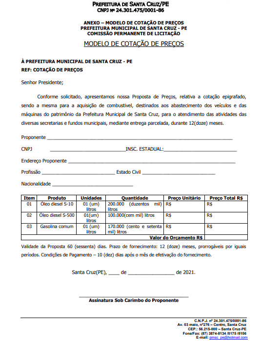 Também é possível que você crie seu próprio modelo de orçamento com base nas imagens desse texto, contendo as informações básicas e preenchendo conforme seu cliente.