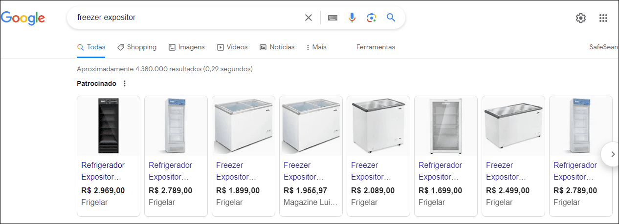 Uma sugestão para você pesquisar, coloque freezer expositor. Assim, terá vários modelos para você analisar o valor, a qualidade e as medidas.