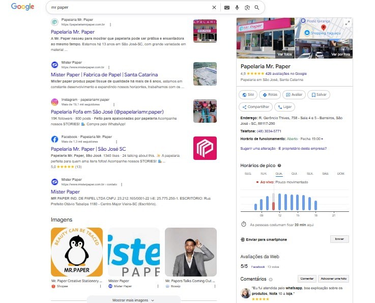Para isso, você pode fazer uma pesquisa como “papelarias perto de mim” (ou qualquer outro nicho) e fazer a análise dos concorrentes a partir dos resultados. Veja o exemplo: