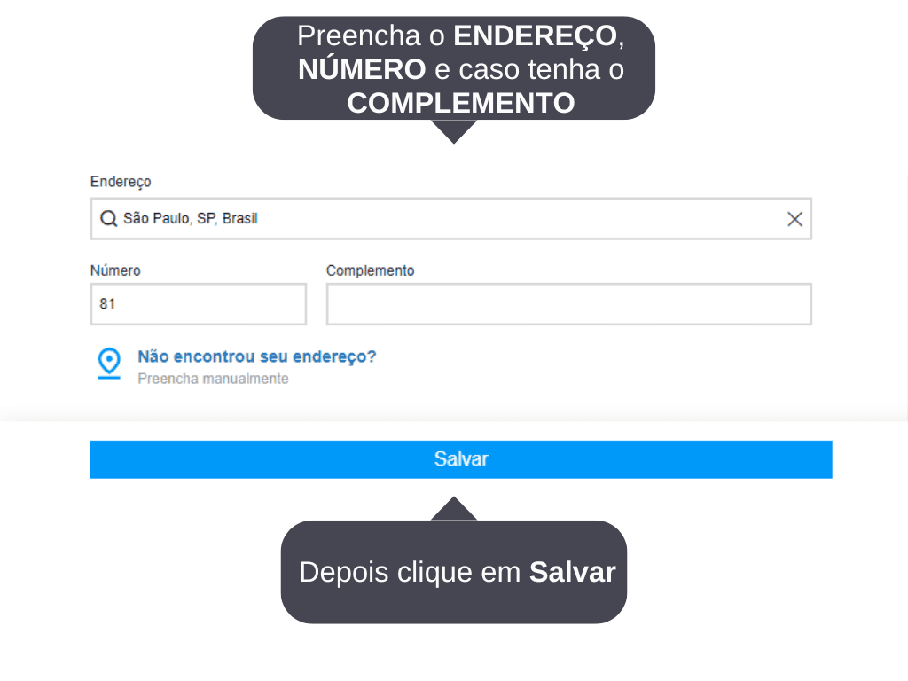 3- Aqui você precisa informar os dados da sua loja física, como o endereço, o número e caso tenha o complemento. Depois é só clicar em “AVANÇAR”.