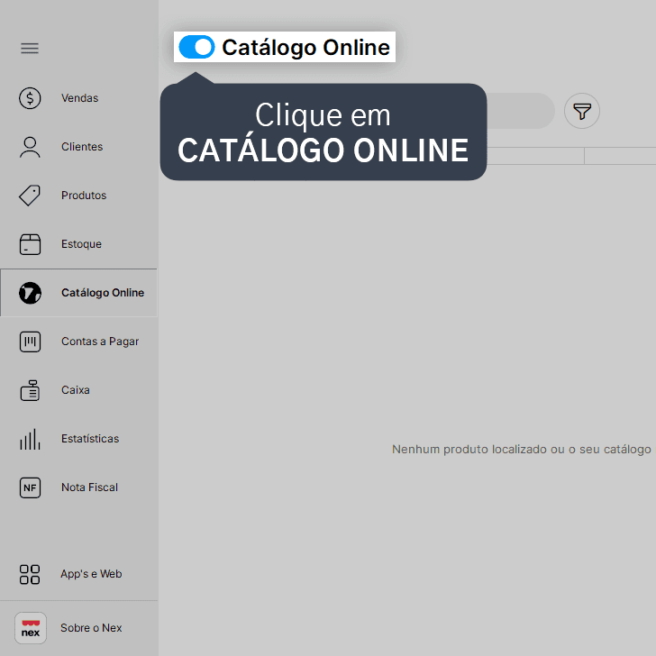 Antes do primeiro passo é preciso ativar o catálogo online no sistema Nex, basta acessar a página do catálogo online.