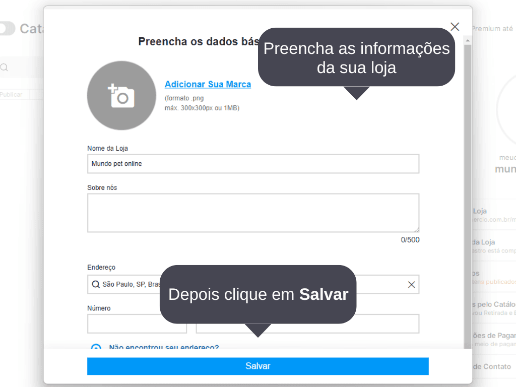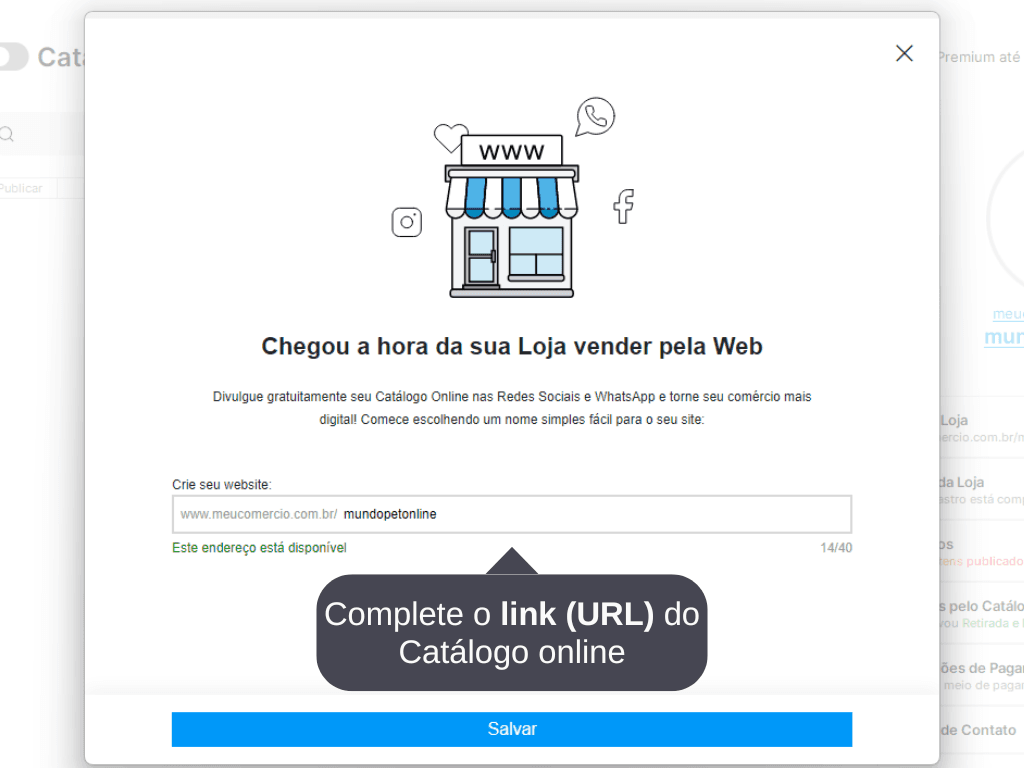 1- É preciso que você complemente a url da sua loja, ou seja, o link do seu catálogo online.