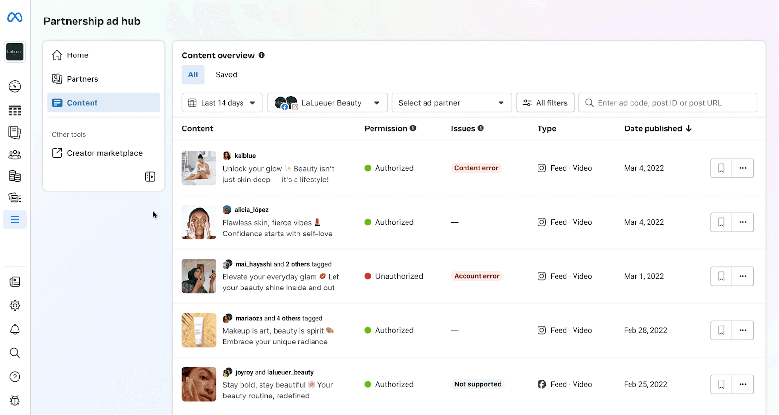 Confira abaixo uma tela do Meta que destaca as principais informações sobre post de influenciadores.