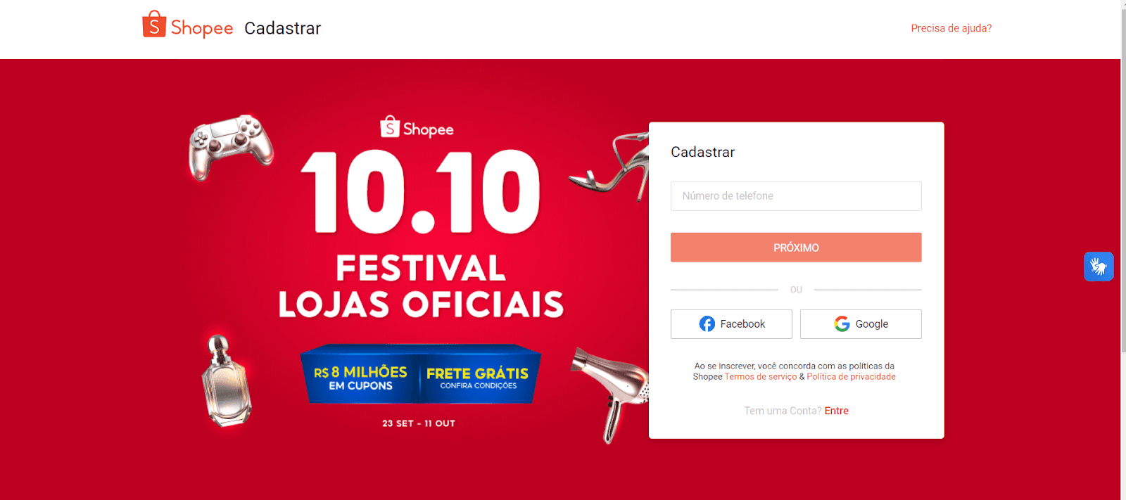 Como criar sua conta na Shopee