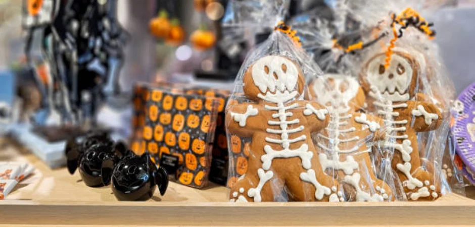 As lojas dos setores alimentícios podem criar pratos diferentes para a data, como sucos com cores típicas do Dia das Bruxas, incorporar abóbora em misturas exóticas e brincar com os formatos das sobremesas, fazendo alusão a esqueletos, fantasminhas e outras figuras.