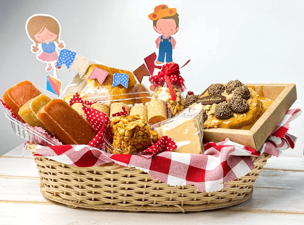 Caso você trabalhe com a venda de alimentos, é legal investir em comidas de festa junina, doces e também salgadas. Veja alguns exemplos: