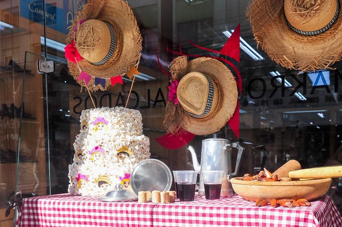 Não esqueça de caprichar na vitrine junina da sua loja, porque é a primeira coisa que o cliente irá notar. Então neste São João, utilize a decoração de festa junina para vitrine de loja, coloque objetos que se destacam e que já estejam em evidência dentro da loja, como os itens citados acima. Veja um exemplo: