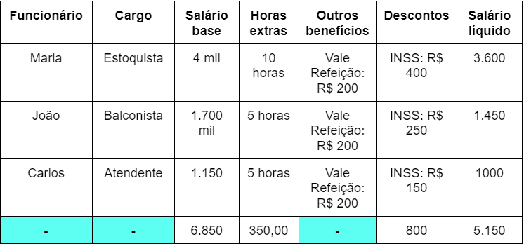 Folha de pagamento: exemplo