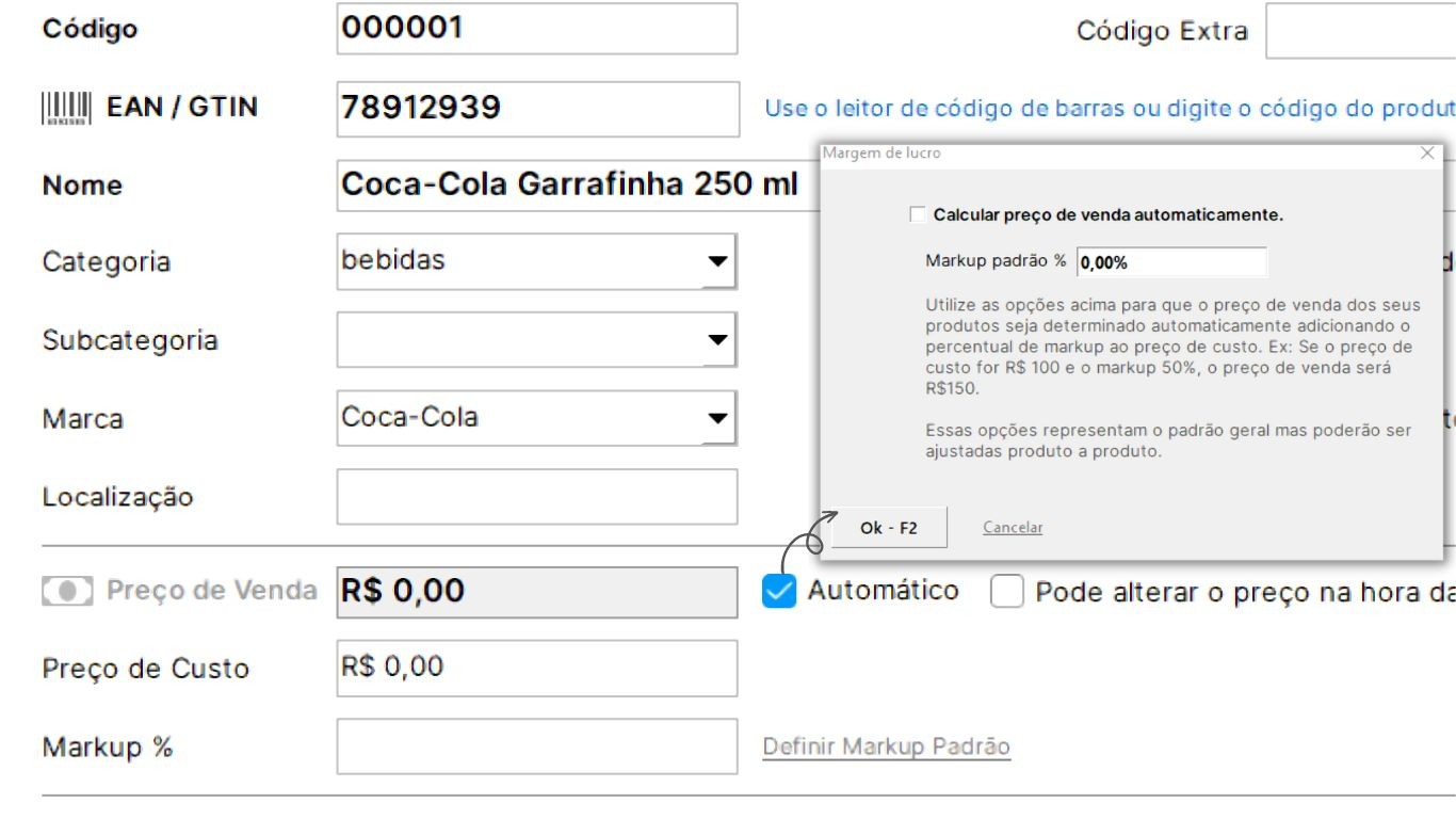 Determinação da sua margem de lucro: Escolha a margem específica ou padrão para cada mercadoria. É aqui que você informa ao sistema se todos os seus produtos vão te dar o mesmo lucro ou cada um terá um valor especial.