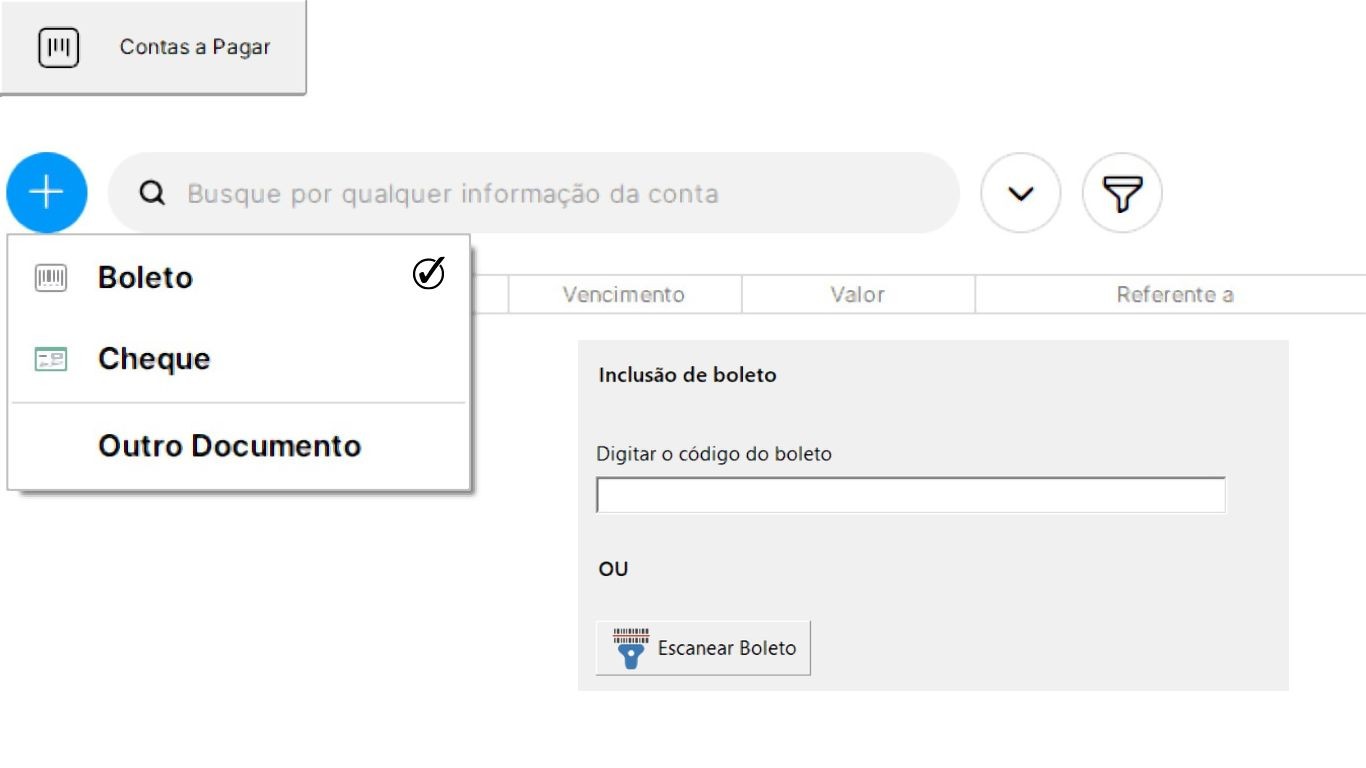 Boletos escaneados: Os boletos digitais que você recebe são escaneados pelo sistema e rapidamente identificados. Você só precisa estar com ele aberto em seu dispositivo antes de clicar nessa opção, então após isso o sistema fará uma análise de tela para encontrar as informações do código de barras.
