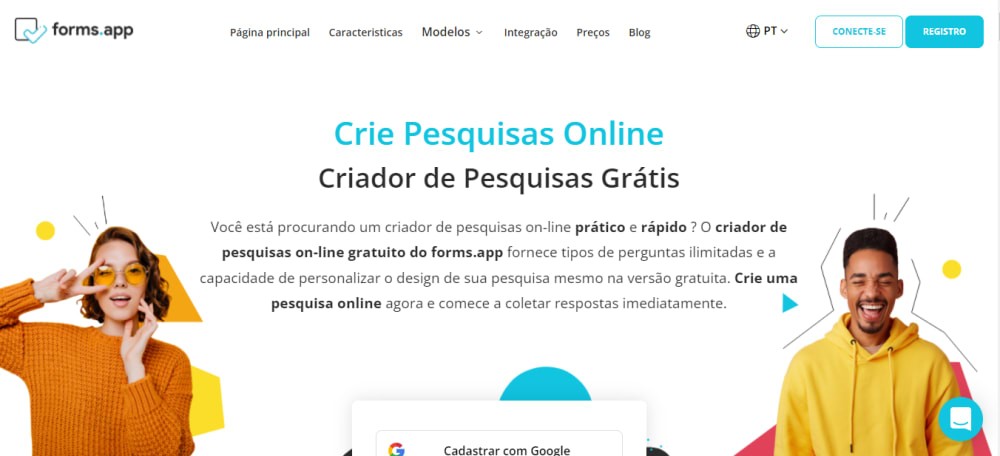 Mais uma ferramenta que facilita a criação e divulgação de pesquisas online. Nela você encontra templates prontos ou pode criar seus formulários do zero e enviar sua pesquisa por e-mail ou SMS.