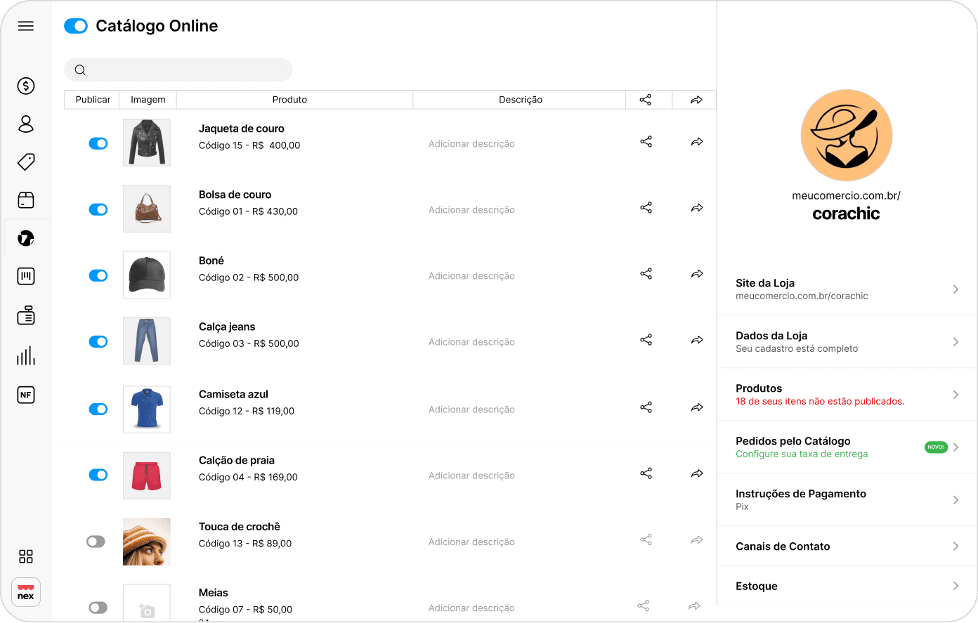 Você não precisa ter loja física para usar o Catálogo, mas se tiver, vai vivenciar uma experiência figital incrível com o Nex.