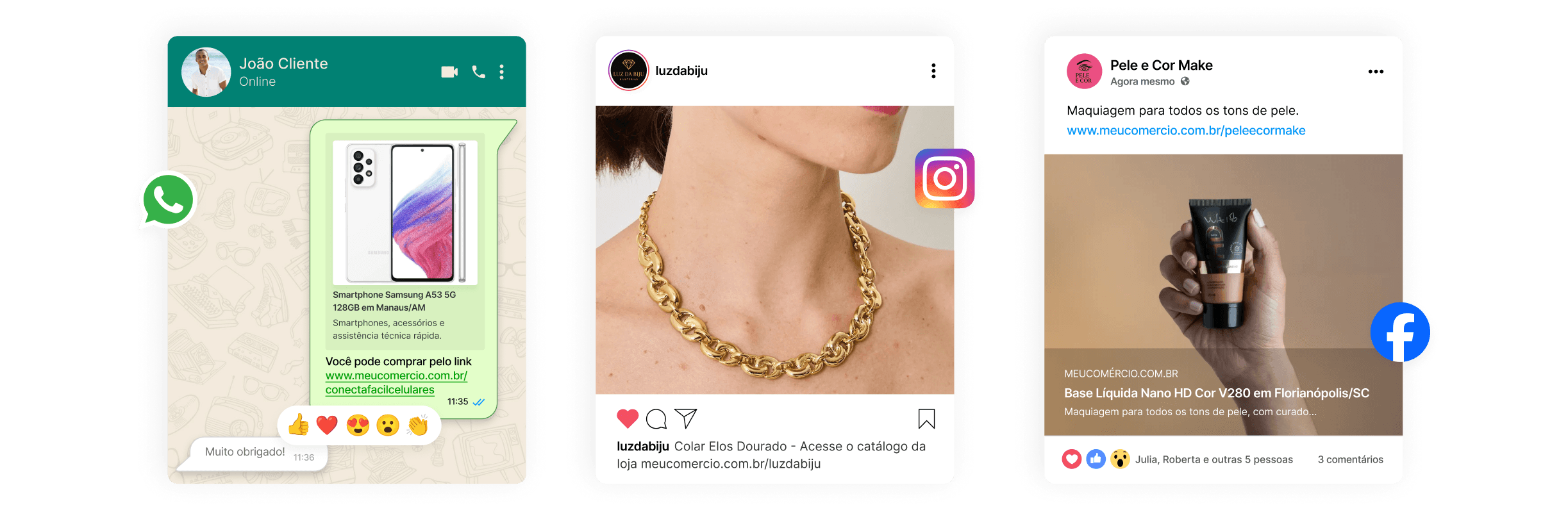 Use a criatividade para compartilhar seu catálogo online grátis pelo WhatsApp, redes sociais e até nas embalagens da sua loja.