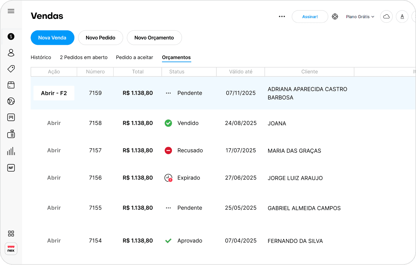 Com o Nex, você cria orçamentos online de qualquer lugar, sem necessidade de estar na loja.