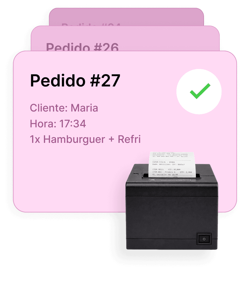 Configure sua impressora para que todo pedido feito na mesa ou no balcão seja impresso em outro setor, como cozinha, almoxarifado e estoque.