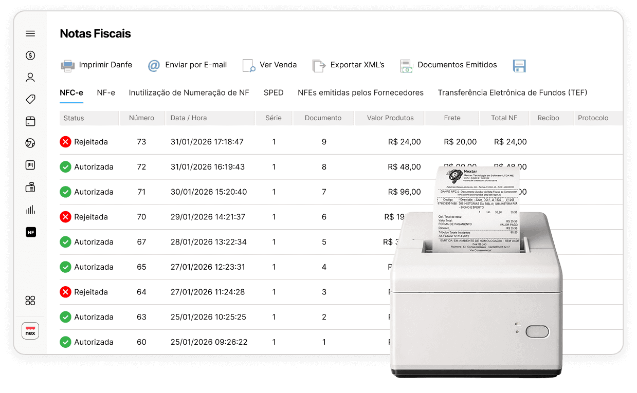 O Nex é um emissor de cupom fiscal (NFC-e) e de nota grande (NF-e) sem limite de emissões.