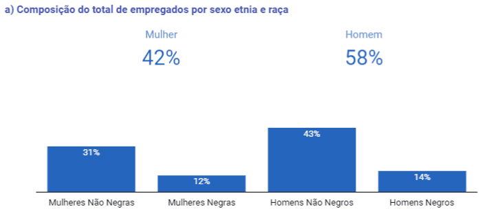 Portanto, a informação sobre raça não era um dado solicitado às nossas pessoas colaboradoras até fevereiro de 2024, quando atualizamos todas as informações sobre raça na empresa para o, então em vigor, Relatório de Transparência. Assim que recebemos o relatório tentamos contato com o portal disponibilizado pelo governo no dia 26/03/2024 através do e-mail igualdadesalarial@gov.br, a fim de que o erro do relatório fosse corrigido para conseguimos disponibilizar o relatório MTE com a informação correta, porém não recebemos nenhum retorno até o momento.