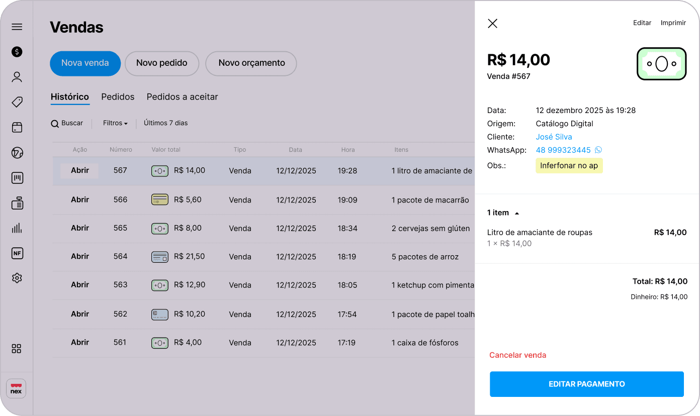 O Nex é um sistema para mercadinhos e mercearias completo. Tenha acesso ao PDV, à emissão de comprovantes, à integração com balanças, ao controle de estoque e muito mais!