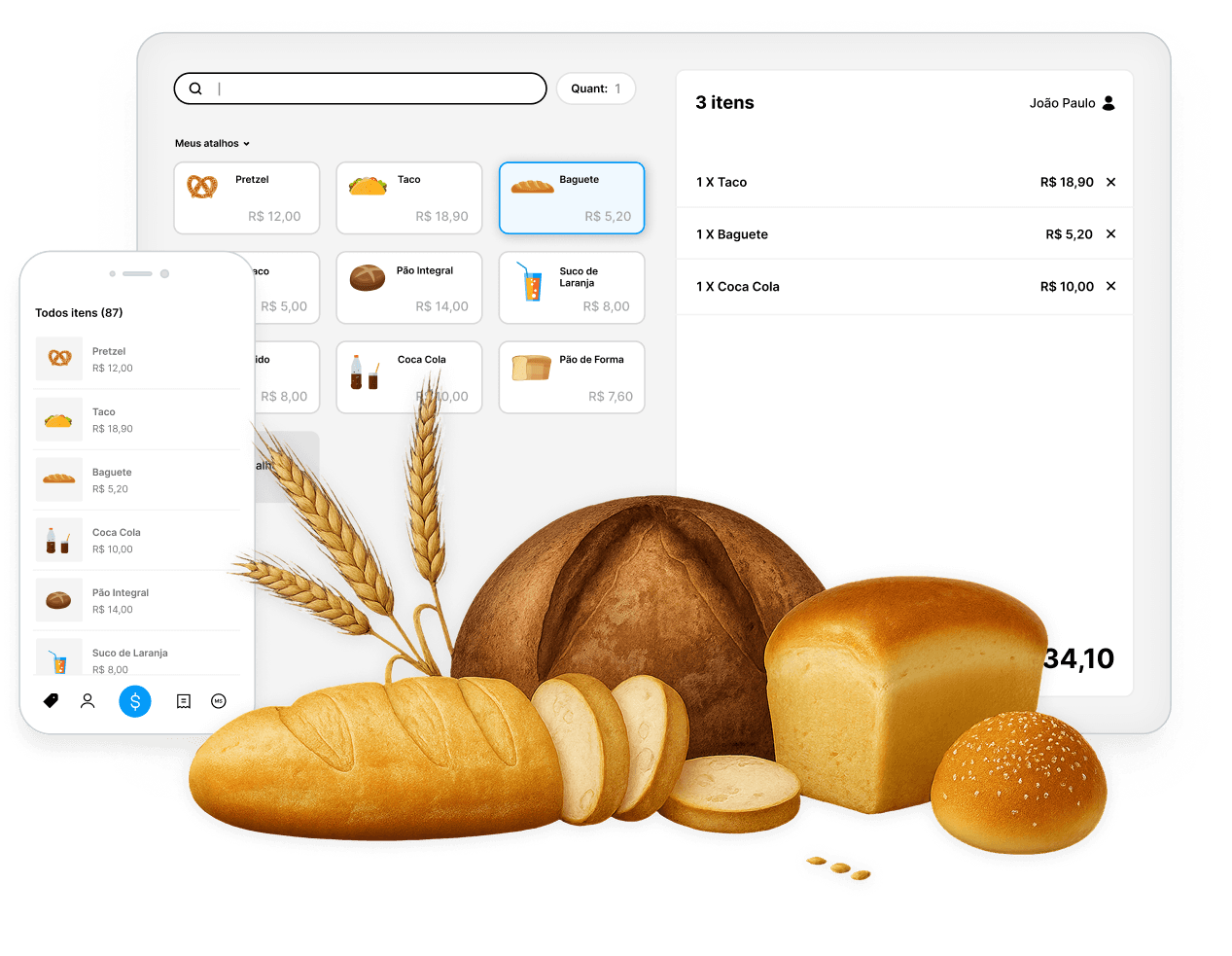 Agilize suas vendas com um PDV para padaria completo e com tela personalizável. Integre o sistema com equipamentos, controle meios de pagamento e mais.